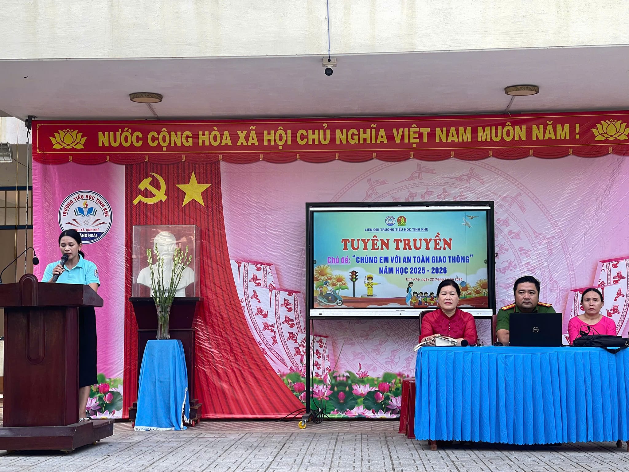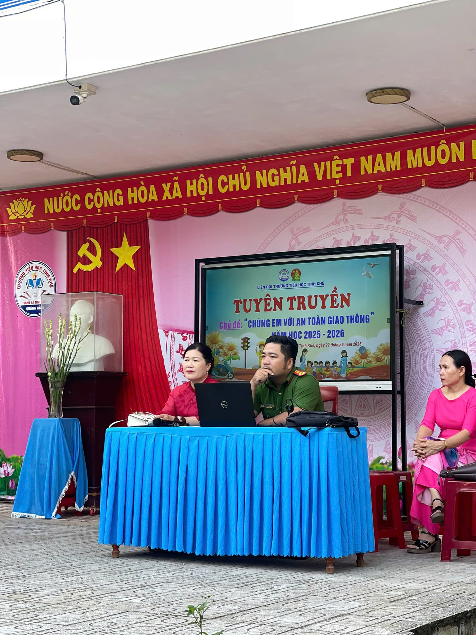 Nhằm nâng cao ý thức chấp hành luật giao thông đường bộ cho đội viên, học sinh trong nhà trường, sáng ngày 22/9/2025, Liên đội trường Tiểu học Tịnh Khê đã mời Công an xã Tịnh Khê tổ chức buổi tuyên truyền về an toàn giao thông.